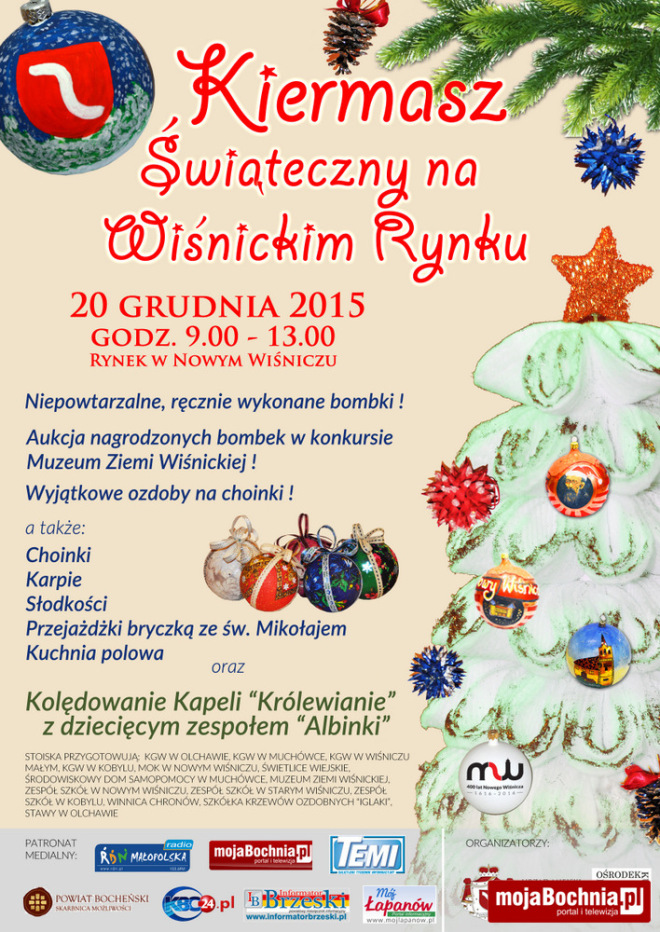 „Kiermasz Świąteczny na Wiśnickim Rynku” potrwa w niedzielę w godzinach 9.00 – 13.00.