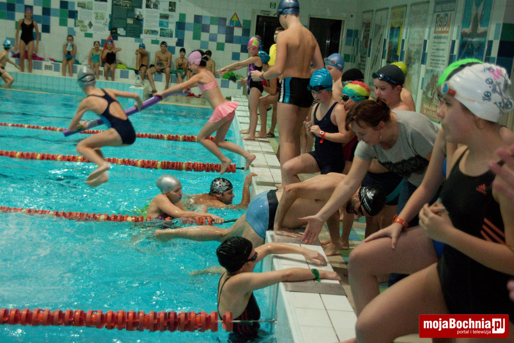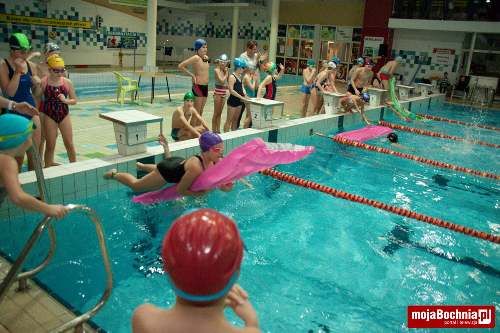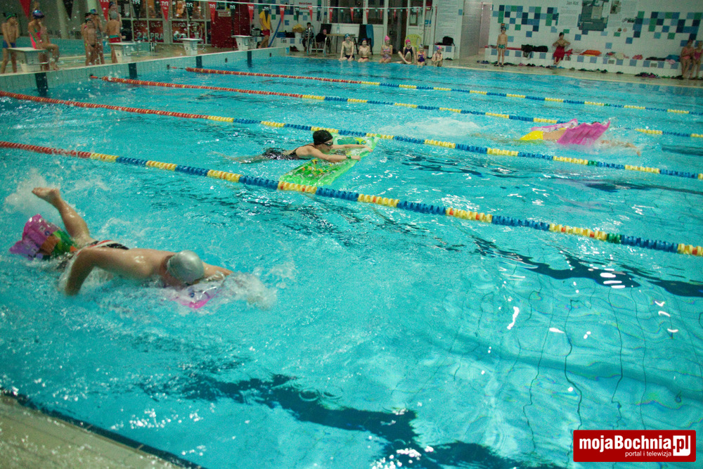To były najweselsze i z pewnością najgłośniejsze (jeśli chodzi o doping rodziców, trenerów, nauczycieli i dzieci) zawody, jakie odbyły się w tym roku na Krytej Pływalni im. Jana Kota w Bochni.