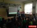 W trakcie spotkania z uczniami klas I-VI pedagog szkolny mgr Paulina Okulicka i policjant Wojciech Więcek omawiali pozytywne i negatywne strony Internetu.