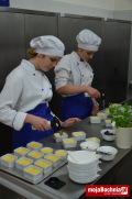 Młodzi kucharze przygotowali fantastyczną przystawkę – polędwiczkę wieprzową w kolendrze, chwaląc się nie tylko swoimi umiejętnościami ale także nowoczesnym wyposażeniem pracowni gastronomicznej. Jako, że każdy posiłek powinien być zwieńczony deserem przygotowano wyśmienity krem brulee.