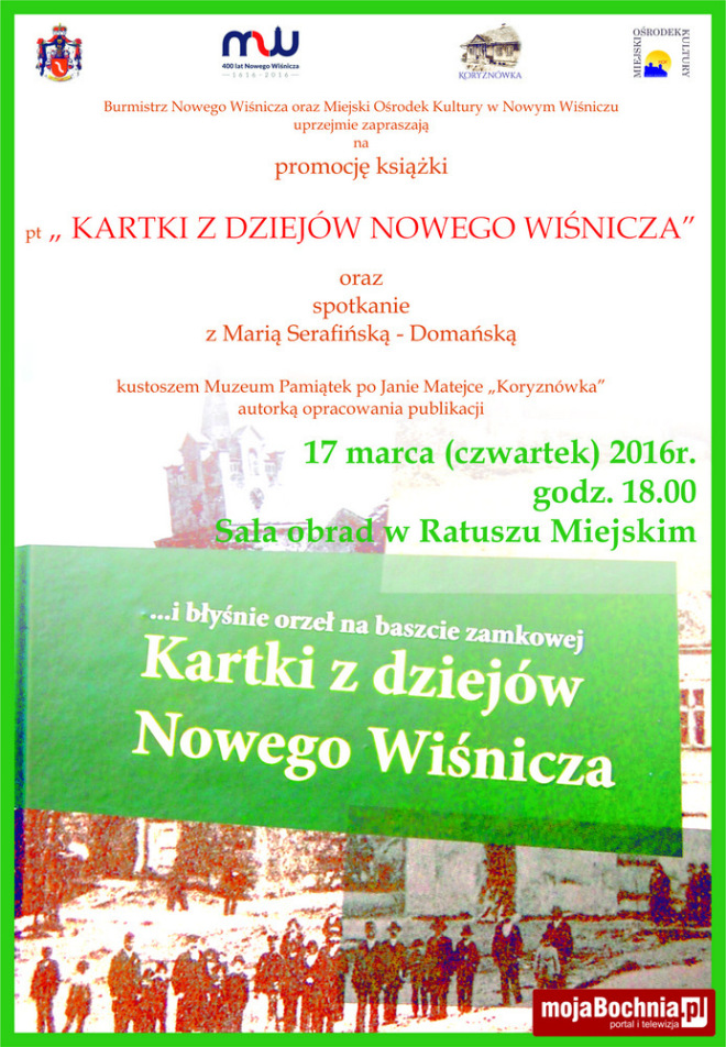 Promocja książki „Kartki z dziejów Nowego Wiśnicza” i spotkanie z autorką rozpocznie się w sali obrad wiśnickiego ratusza dzisiaj (17 marca) o 18.00.