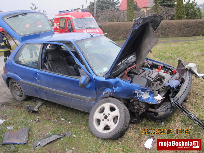 W Starym Wiśniczu doszło do groźnie wyglądającego wypadku. Kierowca citroena na łuku drogi wjechał wprost pod nadjeżdżający z przeciwka samochód. Pojazdy zderzyły się czołowo.