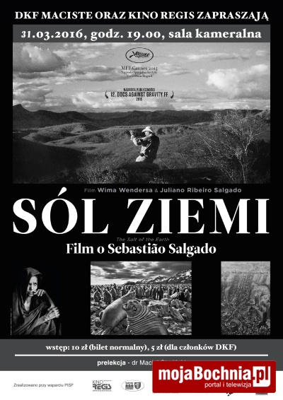 31 marca /czwartek/ na godz. 19.00 Kino Regis zaprasza na biograficzny dokument „Sól ziemi” w reż. Wima Wendersa i Juliano Ribeiro Salgado. Spotkanie w ramach DKF Maciste. Prelekcję przeprowadzi dr Maciej Stroiński.