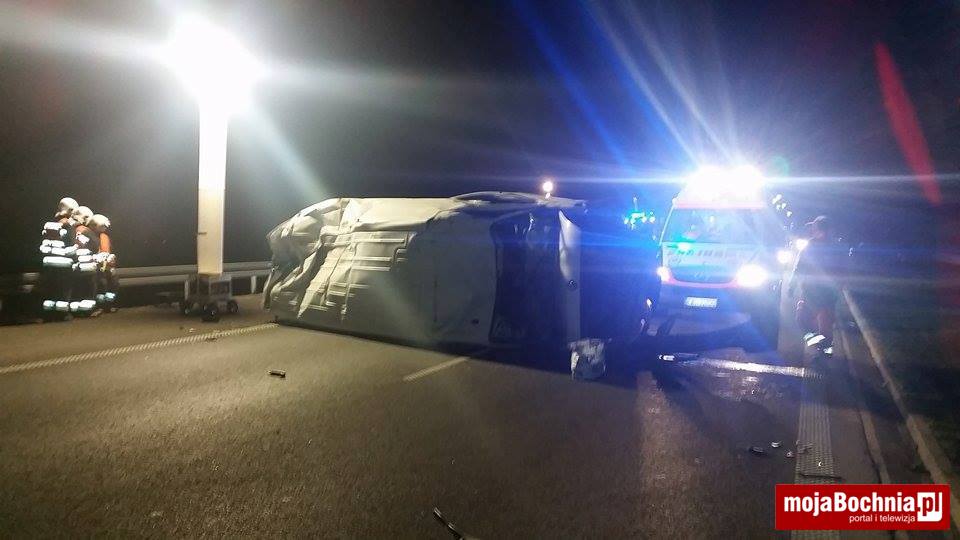 Do zdarzenia doszło w środowy wieczór ok. 21.40 w rejonie MOP w Stanisławicach. Kierowca Audi najechał na samochód dostawczy marki Renault z przyczepą. W efekcie pojazd ten się przewrócił. Na szczęście nikt nie został ranny. Droga w kierunku Tarnowa została całkowicie zablokowana, policja kierowała ruch od węzła „Targowisko” w kierunku drogi krajowej nr 94.