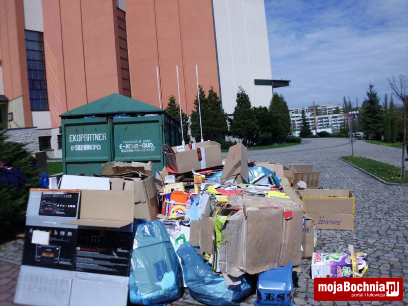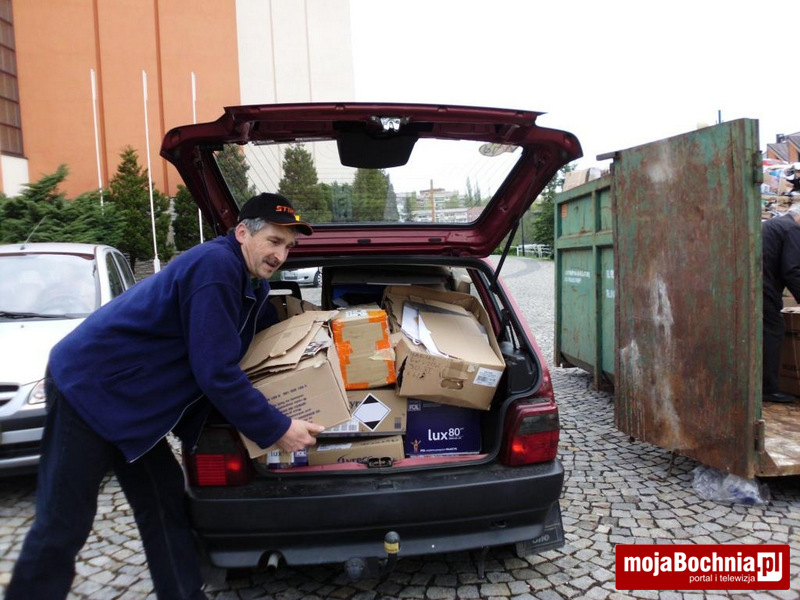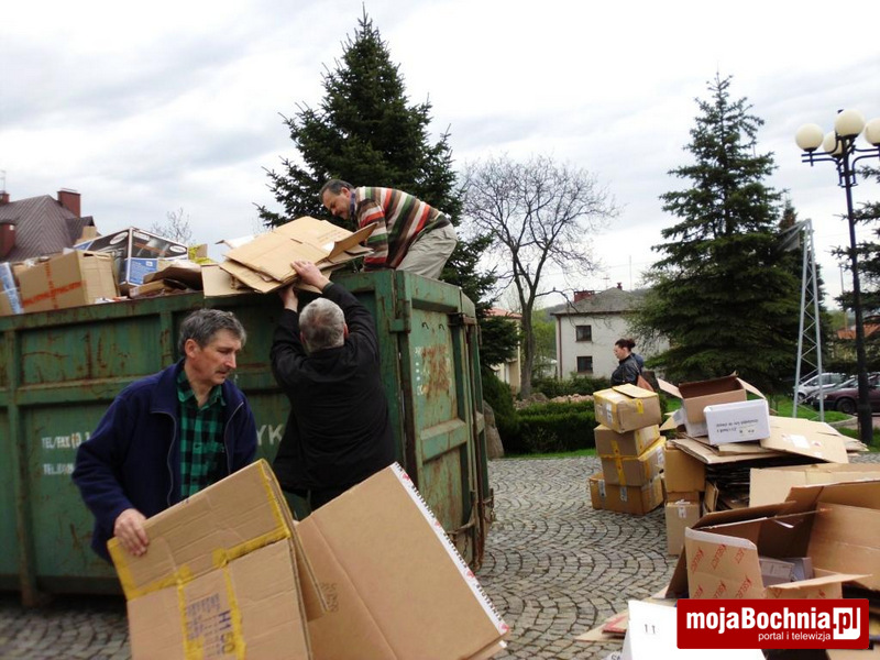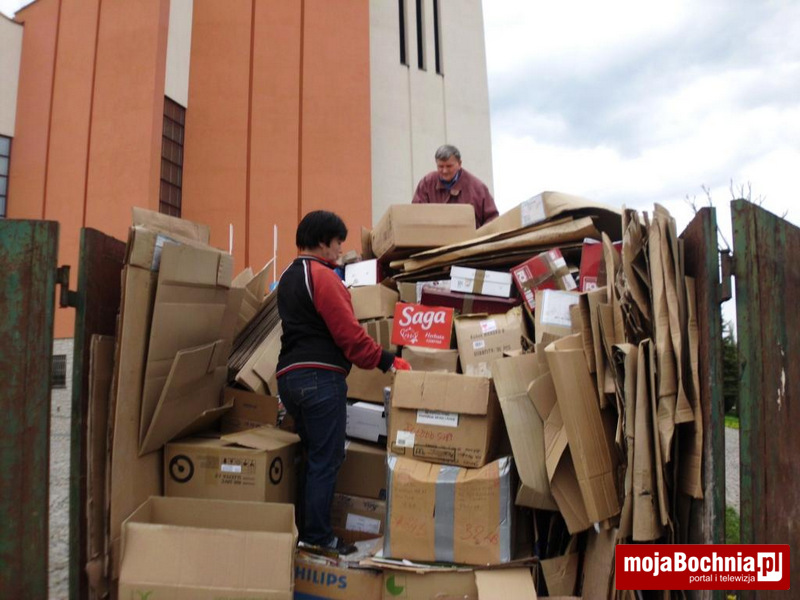 Ponad 10 ton makulatury zebrano w sobotę w Bochni. Przez cały dzień przy kościele św. Pawła Apostoła trwała zbiórka zużytego papieru oraz kartonu. Aby je pomieścić, trzeba było aż trzech kontenerów.
