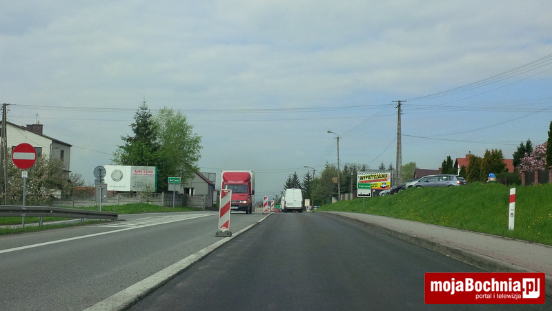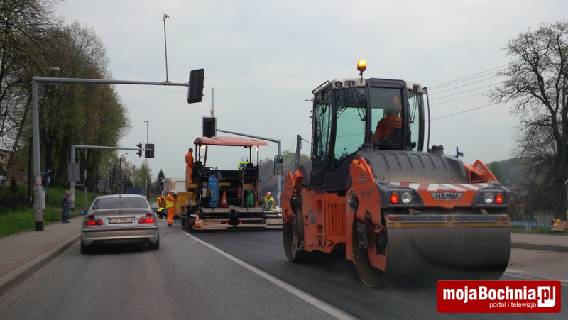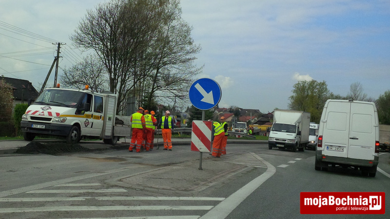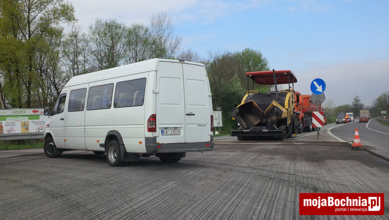 Drogowcy wymieniają nawierzchnię bitumiczną na dwóch odcinkach po 120 m i jednym 400-metrowym (od wyjazdu z Bochni w stronę Krakowa, a także od wyjazdu z Myślenic w stronę Bochni i przed skrzyżowaniem świetlnym obok kościoła).