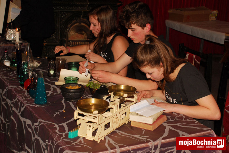 Spotkanie jak zwykle rozpoczęło się wspólnym śpiewaniem i zabawą przy grillu. Kiedy zapadł zmierzch wszyscy uczestnicy przenieśli się do budynku szkoły gdzie czekały na nich liczne atrakcje. Na początek przeprowadzono Turniej Trójmagiczny „Wiedzy o Harrym Potterze” przygotowany przez panie: Magdalenę Szczeblewską oraz Barbarę Szołdrowską z Biblioteki Pedagogicznej w Bochni. Uczniowie biorący udział w turnieju najpierw musieli rozwiązać test indywidualny oparty o książkę JK. Rowling. Do kolejnego etapu przeszli już tylko wyłonieni finaliści, na których czekały zadania praktyczne: z wróżbiarstwa, wiedzy o eliksirach i obrony przed czarną magią. Laureaci musieli wykazać się wyjątkową fantazją, a wczucie się w rolę było równie wysoko punktowane. Dodatkowe zadanie oparte na logice okazało się wyjątkowo trudne. Ostatecznie jury w składzie: prof. Snape, Minerwa McGonagall oraz Hermiona Granger podjęło jednogłośny werdykt, a nagrody książkowe otrzymali wszyscy finaliści.