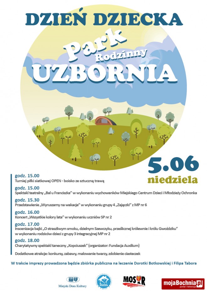 W niedzielę 5 czerwca w Parku Rodzinnym Uzbornia przeprowadzony zostanie bogatszy niż co tydzień program a to z okazji Dnia Dziecka, który w tym roku przypadł w środku tygodnia. Będzie turniej siatkówki, przedstawienia teatralne, dużo muzyki i konkursów. Czekają miłe nagrody. Atrakcje rozpoczną się o godzinie 15.
