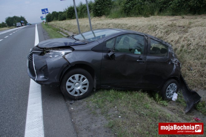 Z ustaleń policji wynika, że kierowca volvo jadący w kierunku Krakowa uderzył w tył jadącej przed nim toyoty, w wyniku czego kobieta nią kierująca straciła panowanie nad pojazdem. Auto dachowało i wylądowało w rowie. Zarówno kobieta, jak i sprawca wypadku trafili do szpitala. Oboje byli trzeźwi.