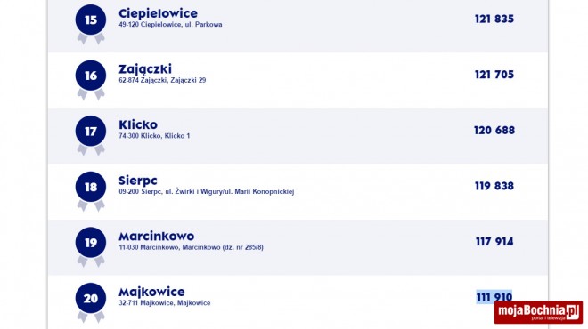 – Łapanów – 3 209 głosów – miejsce 169.