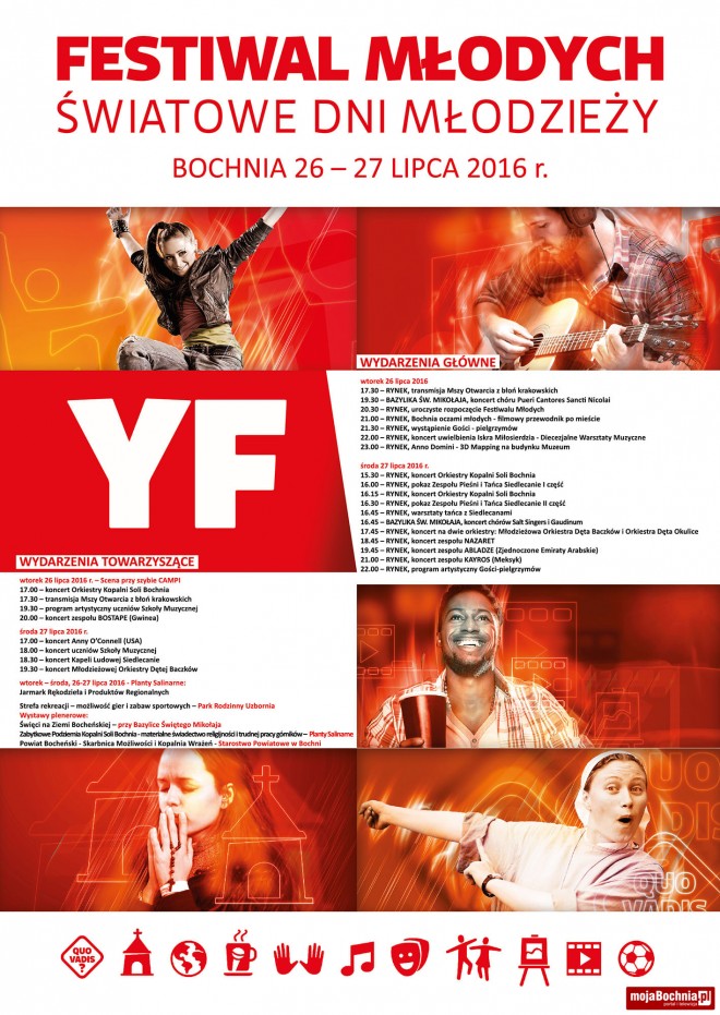 26 lipca w Bochni rozpocznie się Festiwal Młodych. Dwudniowa impreza kulturalno-religijna ma związek ze Światowymi Dniami Młodzieży. Do Miasta Soli przybędzie z tej okazji ponad 5 tys. pielgrzymów z Hiszpanii.