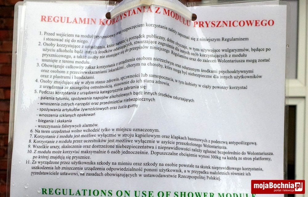 Zgodnie z regulaminem, użytkownicy natrysków mają mieć na sobie strój kąpielowy.