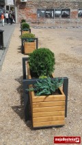Na placu pojawiły się dzisiaj drewniane kwietniki wzdłuż ulicy Solnej. Na razie nie rozpoczęto ustawiania ławek, ani montażu muralu.