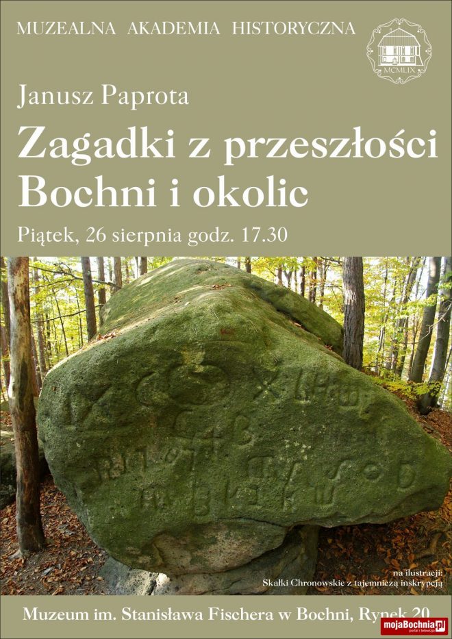 Muzeum im. Stanisława Fischera zaprasza na kolejną odsłonę Muzealnej Akademii Historycznej. W piątek 26 sierpnia o „Zagadkach z przeszłości Bochni i okolic” opowie Janusz Paprota, historyk. Początek o 17.30.