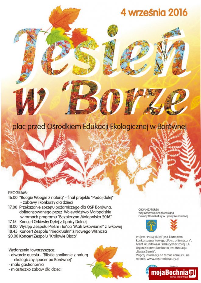 W niedzielę 4 września na placu przed Ośrodkiem Edukacji Ekologicznej w Borównej będzie miała miejsce kolejna edycja „Jesieni w Borze”.
