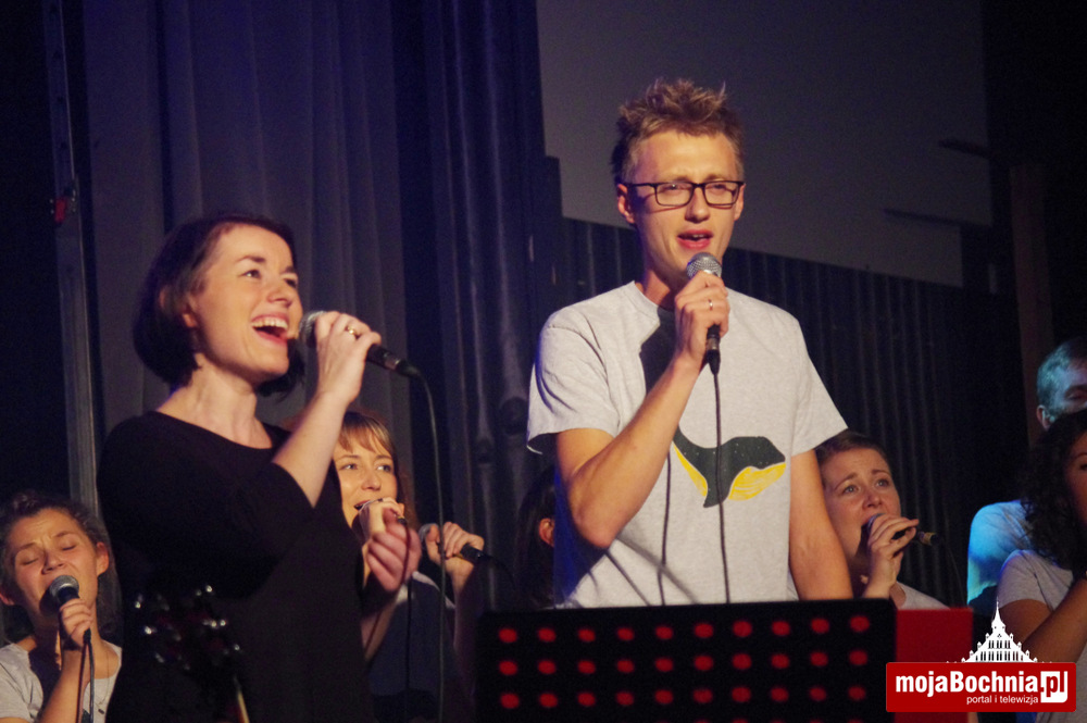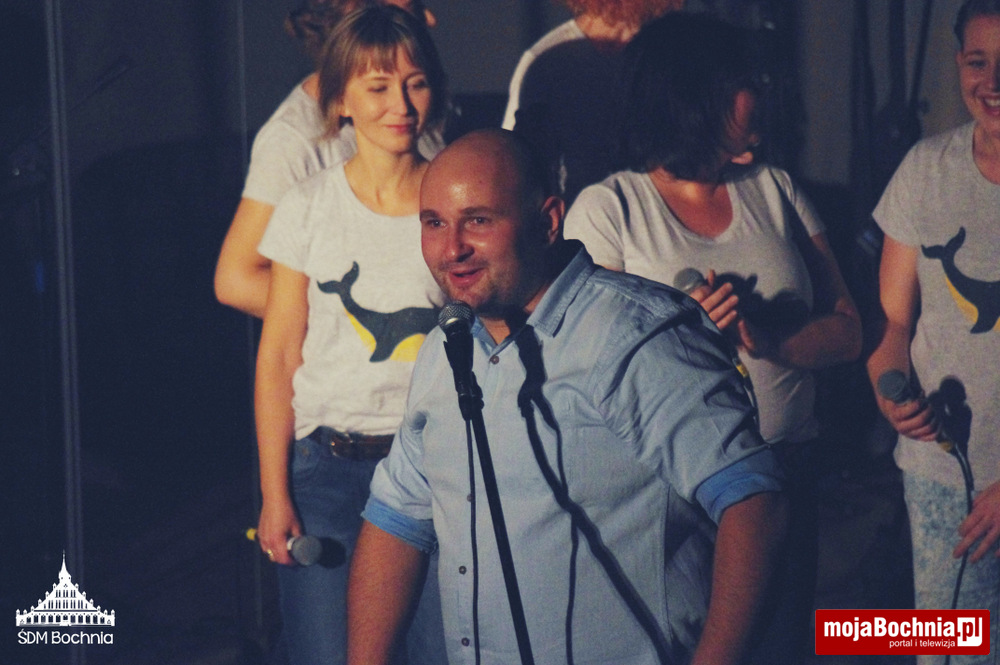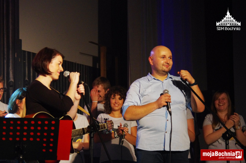 Chwilę po godzinie 19 rozpoczęło się uwielbienie, prowadzone przez Wolontariuszy ŚDM. Pełna sala przez godzinę modliła się przed Najświętszym Sakramentem. Chwila przerwy po adoracji była okazją do obejrzenia zdjęć z lipcowych wydarzeń i spróbowania wypieków przygotowanych przez bocheńską młodzież. Wieczór zakończył się koncertem i wspólną modlitwą z zespołem „NiemaGOtu”. Jednym słowem w Bochni pokolenie ŚDM działa nadal!”