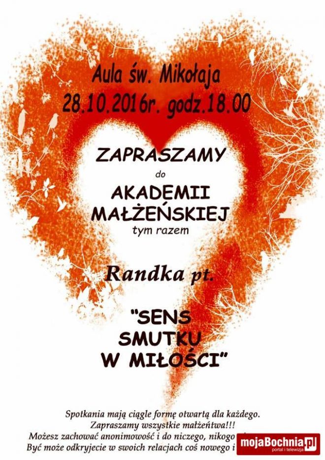 W piątek w Bochni odbędzie się kolejne spotkanie w ramach Akademii Małżeńskiej. Tak teraz nazywa się znany już cykl „Randek małżeńskich”, organizowanych przez parafię św. Mikołaja.