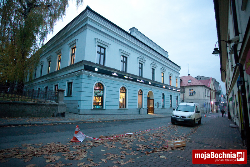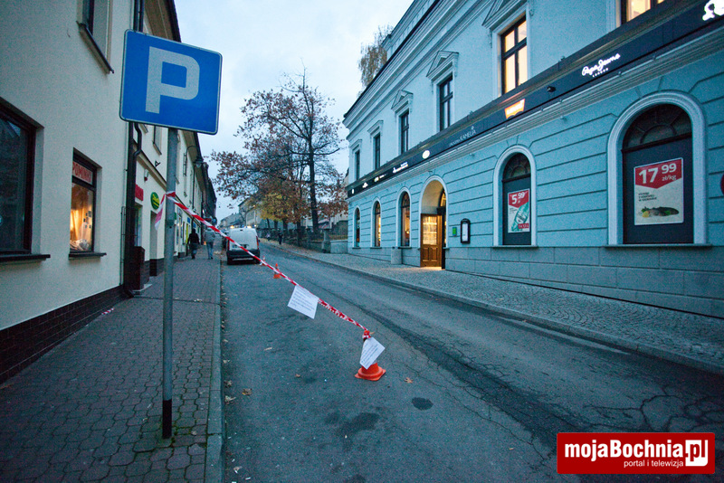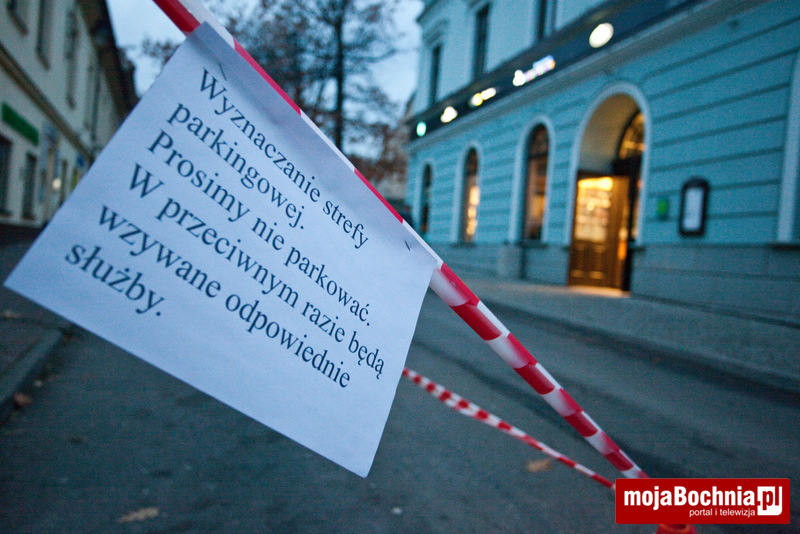 Fragment ulicy przylegającej do Galerii Bocheńskiej od strony południowej został wydzielony. Kartki zawieszone na taśmie informują o „wyznaczaniu strefy parkingowej”? O jaką strefę chodzi?