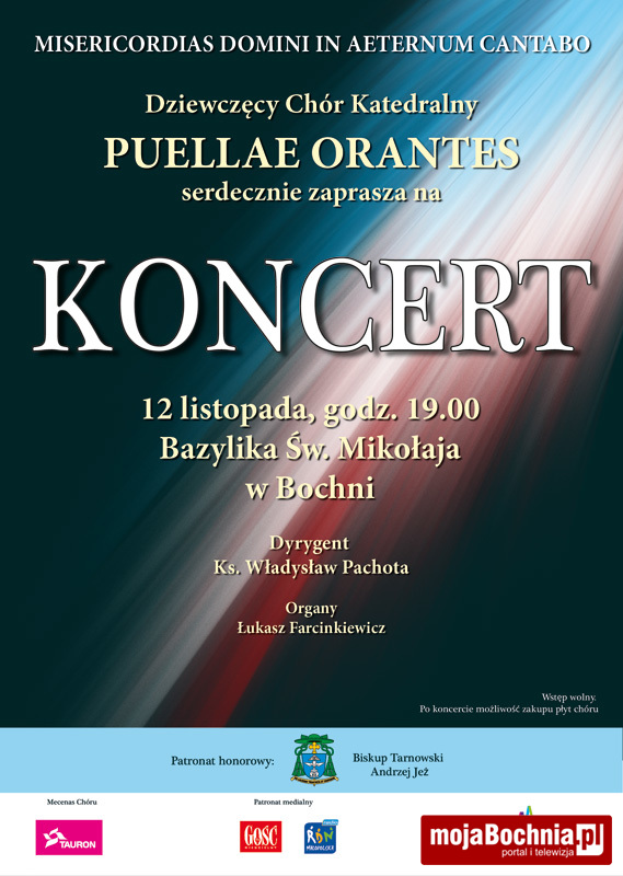 W sobotę w Bochni odbędzie się koncert Dziewczęcego Chóru Katedralnego „Puellae Orantes” z Tarnowa. Działa on 1985 roku i ma na swoim koncie wiele sukcesów. We wrześniu chórzystki podbiły Hiszpanię, gdzie na konkursie chóralnym wygrały wszystkie kategorie, w których brały udział (muzyka sakralna, folklor i pop).