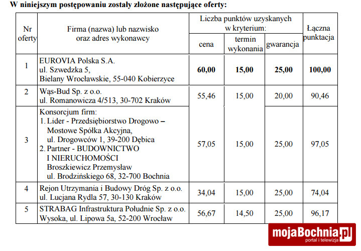 Oto wszystkie złożone w przetargu oferty: