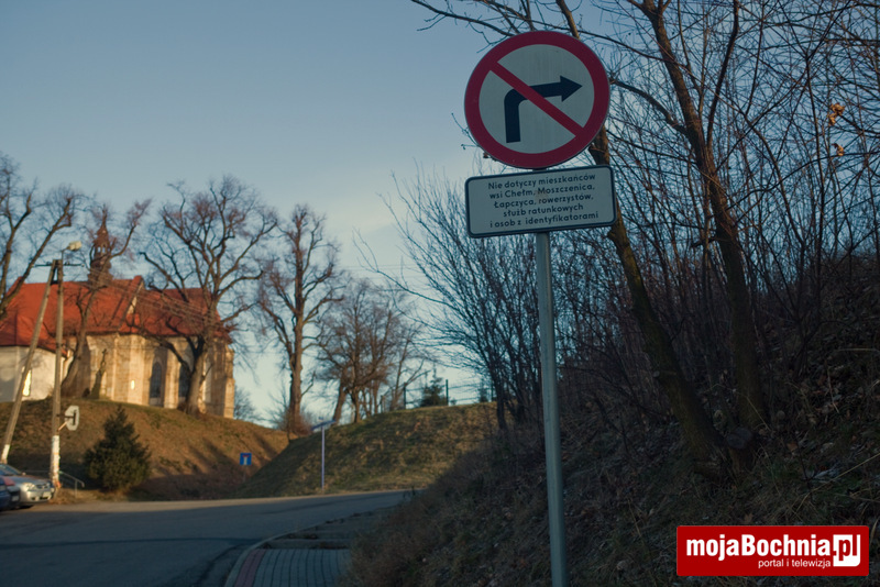 19 znaków odstraszających kierowców pojawiło się w nietypowym momencie (kwiecień 2013): pół roku po otwarciu autostrady Szarów-Tarnów, a więc wtedy kiedy zniknęły uciążliwości związane z korkami na starej czwórce. Pod znakami zakazu ruchu zawarto informację, że nie dotyczy on mieszkańców Łapczycy, Moszczenicy i Chełmu, a także osób z identyfikatorami od urzędu gminy. Każdy z właścicieli posesji czy budynków będzie miał do dyspozycji nieograniczoną ilość identyfikatorów, które będzie mógł wręczyć. Policja będzie honorować zarówno identyfikatory już wcześniej podpisane, jak i te, które – gdy ktoś nie ma – zostaną policjantom przedstawione po fakcie, czyli po wizycie – argumentował wówczas wójt Jerzy Lysy.
