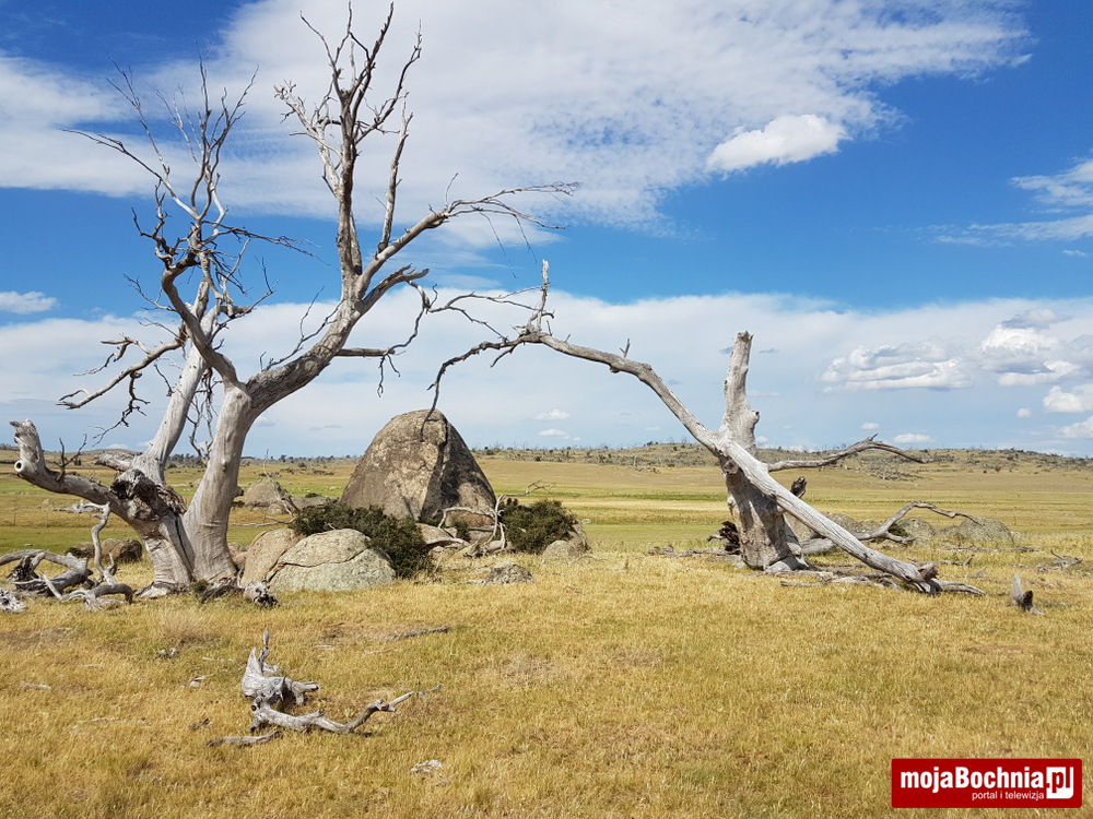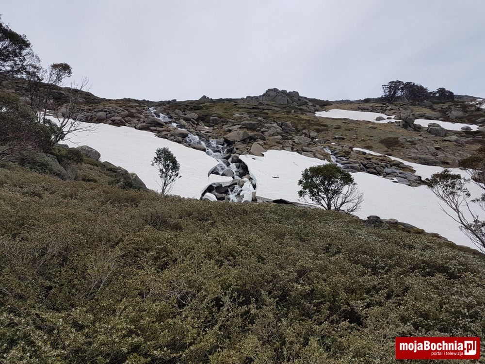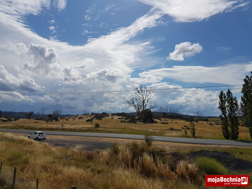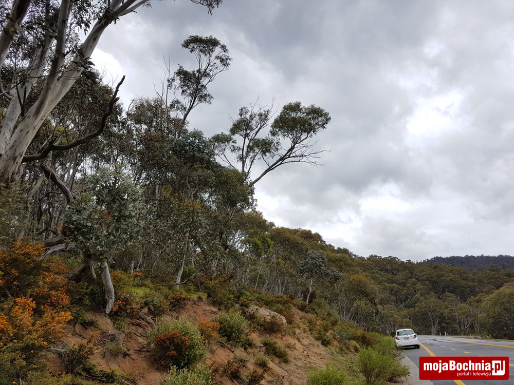 500 km w jedną stronę mijało dość szybko bo krajobrazy były piękne, włącznie z rozległymi polami, wysuszonymi drzewostanami, narzutami skalnymi i widokowymi jeziorami. Temperatura od 32 w Sydney do 20 w Jindabyne. Zaraz po przyjeździe do Jindabyne zaczął padać rzęsisty deszcz. Wyprawa miała zacząć się następnego dnia.