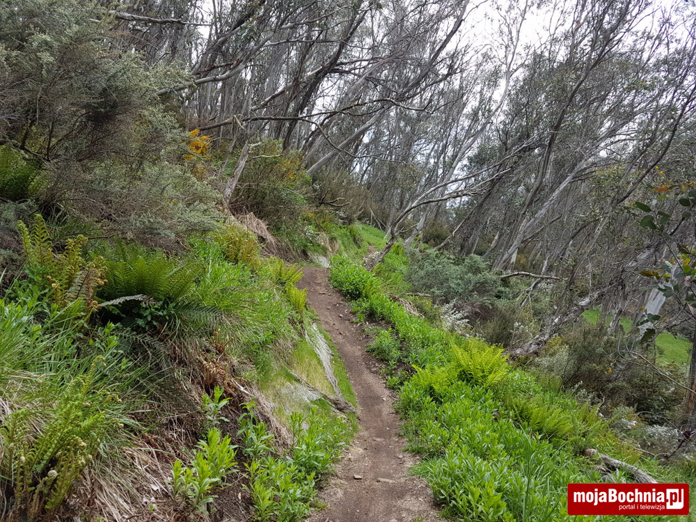 Długość szlaku z Thredbo (1365 m.n.p.m.), na szczyt i z powrotem to ok. 20 km drogi. W dużym uproszczeniu można przyjąć ze drogę na szczyt można podzielić na połowę o różnej skali trudności. Pierwsze 5 km to ostre podejście stokiem narciarskim. Wysokość wzrasta dość dynamicznie. Po drodze pojawiają się piękne widoki na florę i ukształtowanie terenu. Jest kilka ścieżek, ale łączą się one przeważnie na szczycie wyciągu narciarskiego (wysokość 1920 m n.p.m). Tam też znajduje się najwyżej położona restauracja w Australii – Eagels Nest, która serwuje piwo o nazwie: Spirit of Kosciuszko! (Duch Kościuszki). Odcinek biegowo ciekawy, napieram w ubraniu letnim (koszulka i krótkie spodenki). Jest ciepło.