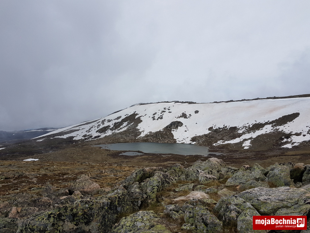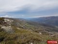Druga część to już duży ganek składający z wielu mniej lub bardziej obłych szczytów o różnym ukształtowaniu. Od górnej stacji kolejki do szczytu mamy ok. 6 km. Teren rozległy i wznoszący się powoli to doskonałe warunki dla hulającego wiatru. Początkowo zakładam czapkę aby nie wyziębić głowy i napieram biegowo przed siebie. Wiatr prosto w twarz, nie pomaga ale teren nie jest stromy. Po 2 km kapituluje i zakładam kurtkę przeciwdeszczową. Dobrze że biegnę (a nie idę) bo nie marznę bardzo. Po drodze spotykam kilka osób, które wyprzedzam lub mijam (te które już schodzą). Ubrani dość zimowo i patrzą na mnie pewnie jak na wariata.