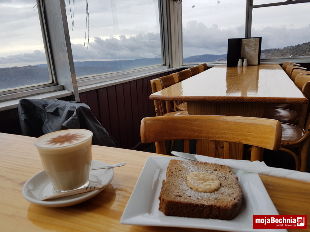 Z powrotem biegnie się super, bo wiatr jest tym razem w plecy. Wykonuje za moje nogi 30% roboty. Po dotarciu do górnej stacji kolejki i 15 km w nogach czas na kawę z ciastkiem bananowym. Trochę zgłodniałem. Ciastko smakuje wybornie!