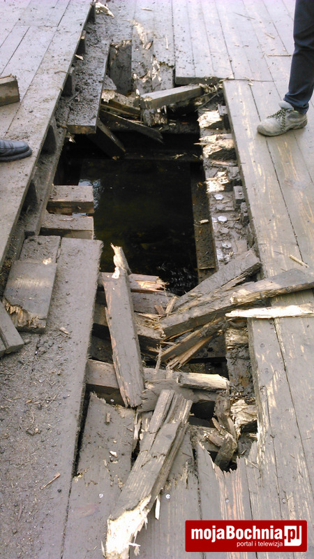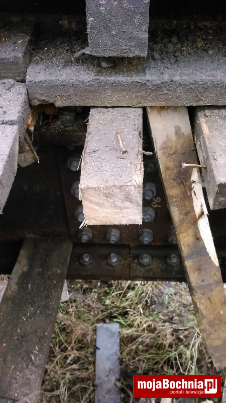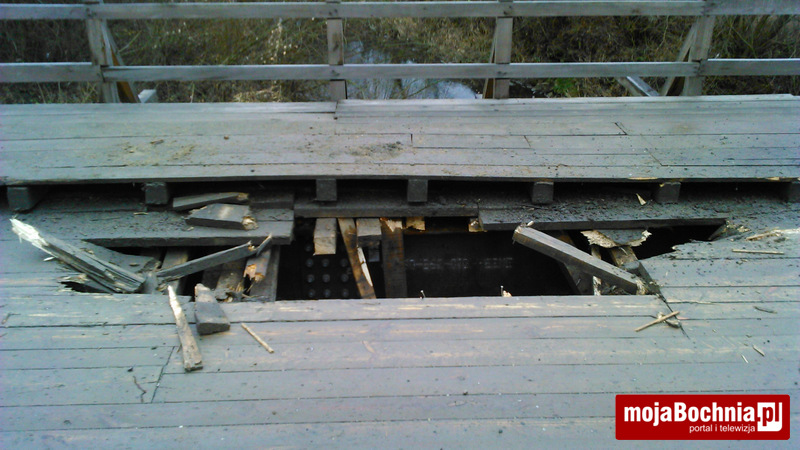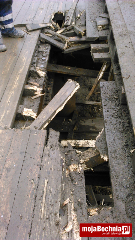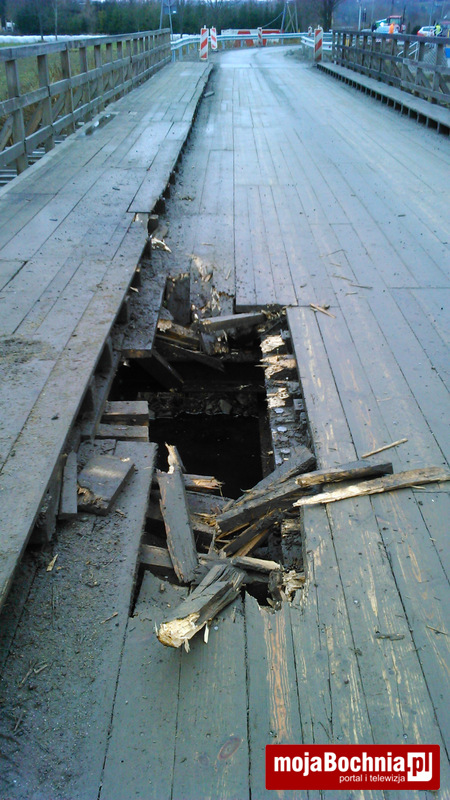 Wszystko wskazuje na to, że ktoś wyciął kawałek belki, stanowiącej konstrukcję nośną tymczasowego mostu. Efekt? Pod ciężarem cięższego samochodu wypadła dziura. Wszystko widać na poniższych zdjęciach: