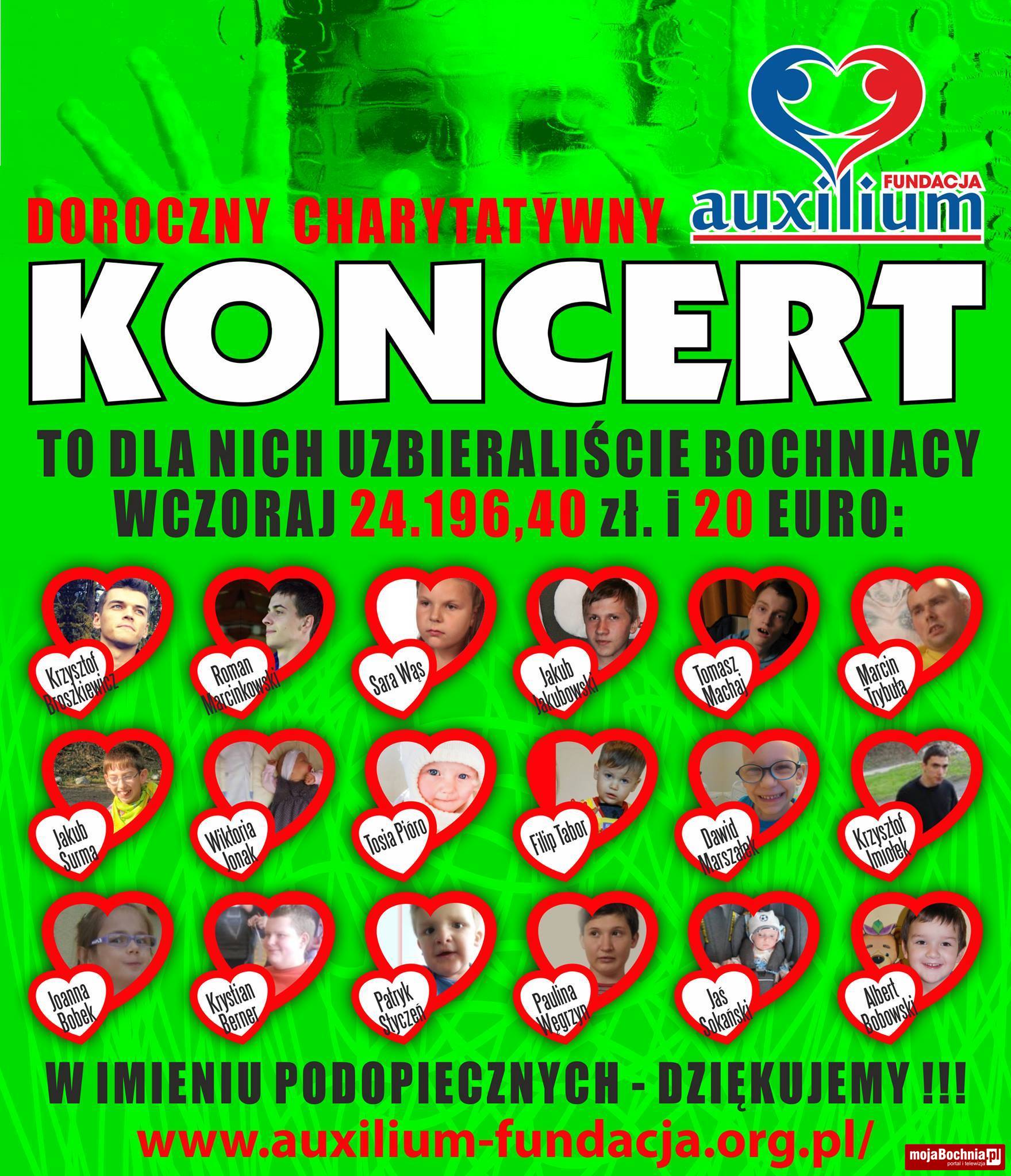Fundacji Pomocy Osobom Niepełnosprawnym „Auxilium” podliczyła wyniki wtorkowego koncertu charytatywnego. Na deskach Oratorium św. Kingi wystąpili Evening Standard oraz Tymon Tymański. Zebrano 24196,40 zł i 20 euro.