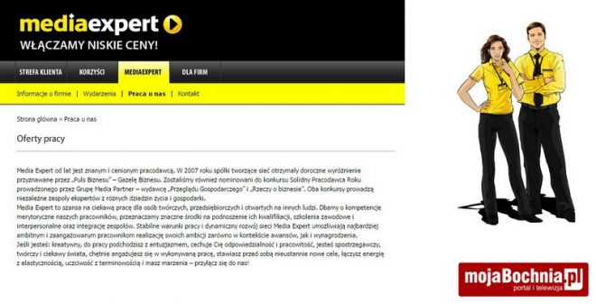 Prosimy o składanie swojej aplikacji (CV i listu motywacyjnego) poprzez stronę www.mediaexpert.pl. W zakładce INFORMACJE – PRACA (zamieszczona na dole strony internetowej) proszę o wybranie interesującej Państwa oferty i zaaplikowanie na nią za pomocą przycisku „Aplikuj”.
