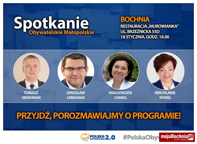 Spotkanie ma na celu prezentację programu byłej partii rządzącej „Polska Obywatelska 2.0”. Odbędzie się w Restauracji „Murowianka” przy ul. Brzeźnickiej 55D. Początek o godz. 18:00.