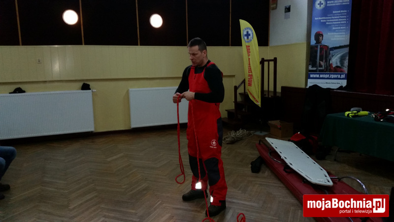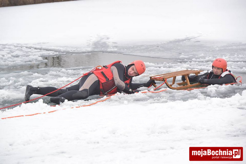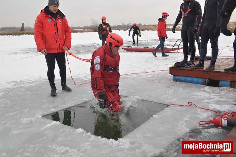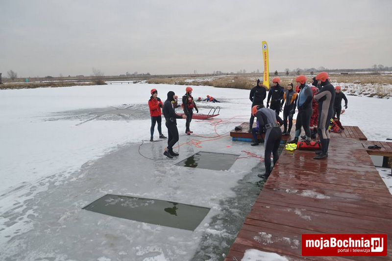 Najpierw miała miejsce część teoretyczna na sali GCKiP w Grobli, następnie cała grupa uczestników udała się na staw do Drwini, gdzie odbyła się część praktyczna. Uczestnicy szkolenia uczyli się różnych technik ratowania życia na lodzie z użyciem sań lodowych, kija hokejowego, sanek oraz deski ortopedycznej. Kolejnym zadaniem na zaliczenie szkolenia było zanurkowanie po manekina na głębokość 2.20 m i przepłynięcie pod lodem do kolejnego przerębla w lodowatej wodzie.