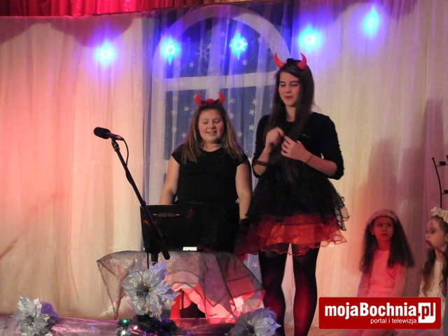 Całość widowiska przeplatana była kolędami, w wykonaniu młodzieżowej, parafialnej grupy apostolskiej, co tworzyło niepowtarzalny klimat radości i refleksji. Aktorzy dali z siebie wszystko, odtwarzając z wielkim sercem powierzone im role. Przemyślana choreografia spektaklu, ciekawa charakteryzacja, nagłośnienie i oświetlenie sceny to ważne elementy całości spektaklu. Zespół artystów ok. 60 osób stanowiły dzieci, młodzież i starsi. Chwała im za to! Wielkie brawa, jakie miały miejsce na zakończenie od uczestniczących w spotkaniu gości i mieszkańców należą się całemu zespołowi aktorów, grupie wokalno-instrumentalnej, reżyserowi a także zaangażowanych w sfinalizowanie przedsięwzięcia rodziców, Kołu Gospodyń Wiejskich.