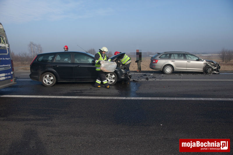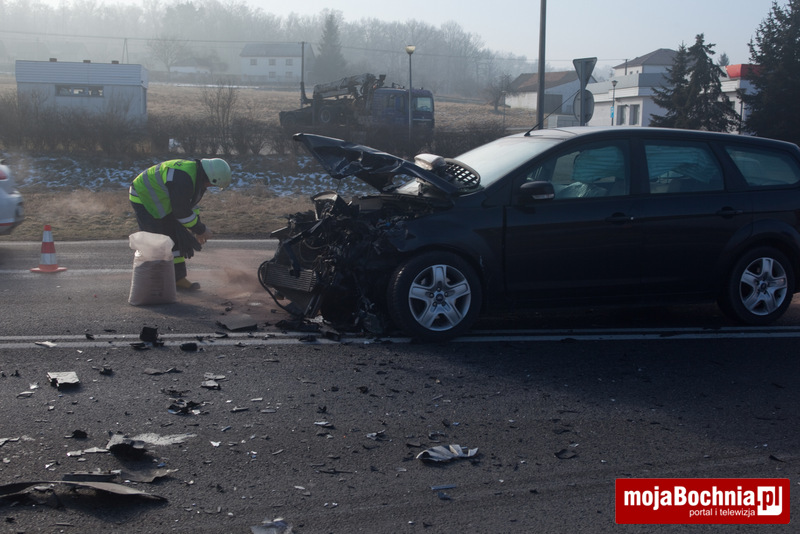 W zdarzeniu brały udział samochody osobowe marki Ford Focus oraz Skoda Octavia. Do zderzenia doszło, gdy kierowca forda wyjeżdżał w kierunku Brzeska ze stacji paliw, nie udzielając pierwszeństwa jadącemu od strony Bochni kierowcy skody.