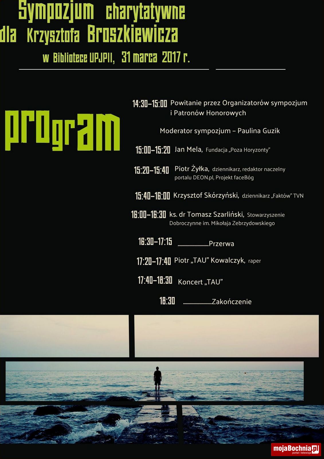 W piątek 31 marca w Krakowie odbędzie się Sympozjum charytatywne dla Krzysztofa Broszkiewicza. W gronie prelegentów znajdują się Jan Mela, założyciel Fundacji „Poza Horyzonty”, Piotr Żyłka, dziennikarz, publicysta i redaktor naczelny portalu DEON.pl, Ks. dr Tomasz Szarliński, prezes Stowarzyszenia Dobroczynnego imienia Mikołaja Zebrzydowskiego, Krzysztof Skórzyński, dziennikarz TVN oraz Piotr Kowalczyk „TAU” – raper, który wystąpi również z koncertem podczas sympozjum.
