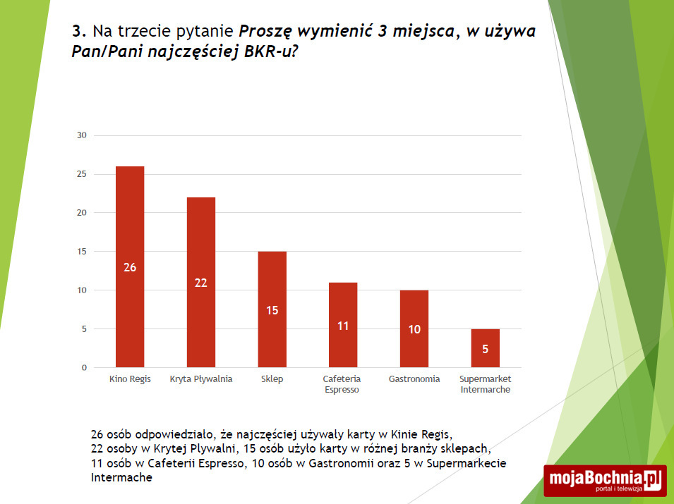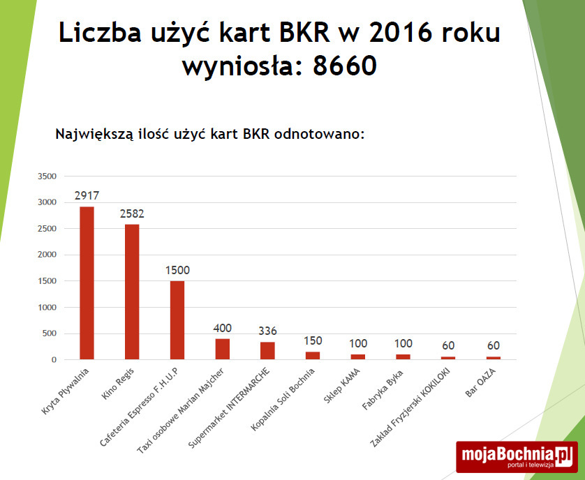 W 2016 roku zanotowano 8660 przypadków użycia Bocheńskiej Karty Rodzinnej. W 2016 r. korzystały z niej 2144 osoby, a ulgi oferowało 61 podmiotów. Gdzie karty używano najczęściej?