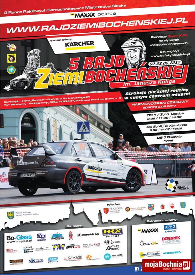 Maciej Stabrawa, dyrektor 5. Rajdu Ziemi Bocheńskiej: – Wiemy, że rywalizacja w rundach Rajdowych Samochodowych Mistrzostw Śląska jest bardzo zacięta, a zawodnikom nie brakuje motywacji i woli walki. Wiemy także, ile serca, pracy, a także funduszy wkładają w to, by móc realizować swoją pasję. Dlatego także i w tym roku pracowaliśmy nad tym, by móc ich dodatkowo wynagrodzić za start i wyniki osiągnięte w Rajdzie Ziemi Bocheńskiej. Za pomoc w realizacji tego celu bardzo dziękujemy naszym partnerom, bez których zorganizowanie takiego widowiska i zawodów nie byłoby możliwe. Jestem przekonany, że 5. edycja rajdu imienia Janusza Kuliga przyniesie Wam wszystkim mnóstwo pozytywnych, sportowych emocji.