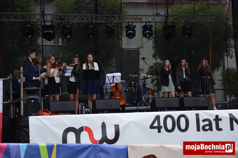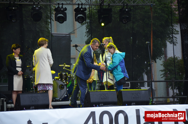 Kolejnym punktem uroczystości było oficjalne powitanie gości, odczytanie fragmentu aktu cechu wiśnickich kupców, rozdanie nagród uczestnikom konkursów organizowanych w ramach obchodów 400-lecia lokacji Wiśnicza. Następnie na scenie pojawili się uczniowie z Zespołu Szkół w Królówce z prezentacją wokalną. Uczniowie z Zespół Szkół w Nowym Wiśniczu wystąpili w przedstawieniu „Pół żartem, pół serio” – w wyobraźni bez granic we fryzurach barokowych. Dużym zainteresowaniem zgromadzonych cieszył się występ zespołu „Nieaktualni” oraz gwiazdy wieczoru – Mateusza Mijala z Zespołem. W wiśnickiej strefie kibica wieczorem transmitowano mecz Polska – Rumunia, podczas której nie brakowało emocji, a każdy gol naszej reprezentacji był przyjmowany z dużą radością i entuzjazmem zebranych. Na zakończenie sobotnich uroczystości odbyła się zabawa z Sax Killa (DJ & saxphone live).