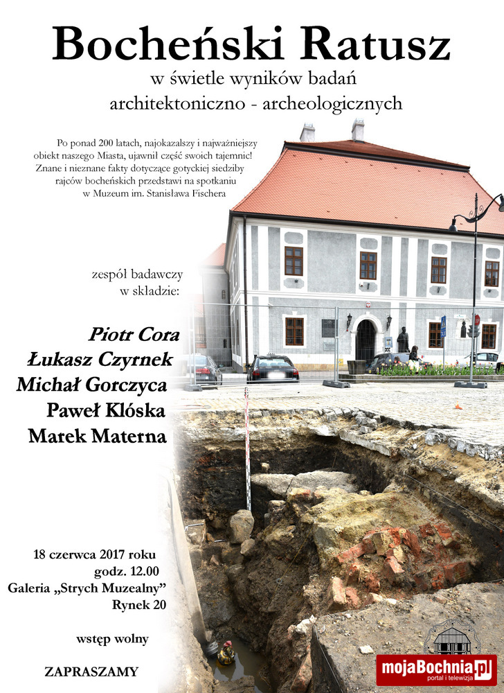 Po ponad 200 latach, najokazalszy i najważniejszy obiekt naszego Miasta, ujawnił część swoich tajemnic! Znane i nieznane fakty dotyczące gotyckiej siedziby rajców bocheńskich przedstawi na spotkaniu w Muzeum im. Stanisława Fischera zespół badawczy w składzie: