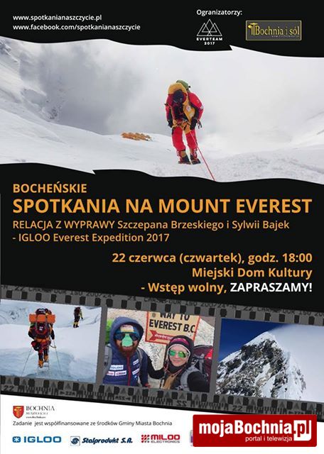 Szczepan Brzeski i Sylwia Bajek zapraszają na spotkanie w Miejskim Domu Kultury w dużej sali kina Regis, podczas którego opowiedzą o swojej wyprawie na Mount Everest, pokażą zdjęcia i odpowiedzą na wszelkie pytania.