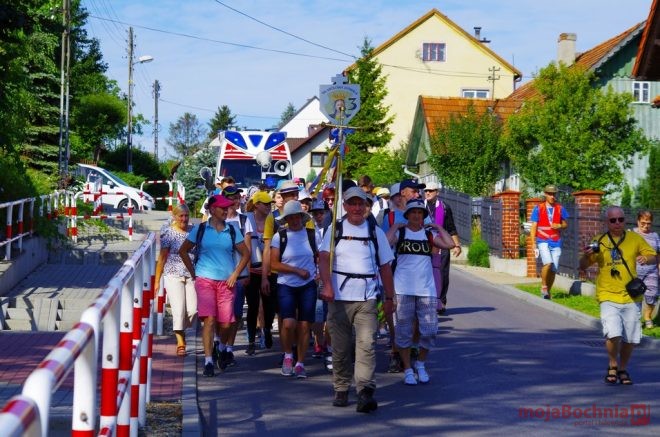 Nasze pielgrzymowanie rozpoczęliśmy o 7:30 Mszą Świętą w kościele pw. św. Pawła Apostoła w Bochni, której przewodniczył ks. Tomasz Skotniczny – główny przewodnik całej naszej pielgrzymkowej wspólnoty. Po Mszy swoje kroki skierowaliśmy ku Bazylice pw. Świętego Mikołaja, gdzie zawierzyliśmy się opiece Matki Bożej Różańcowej. Pod eskortą policji dotarliśmy do mostu wiszącego nad Rabą, po którego przekroczeniu pożegnaliśmy Bochnię.