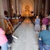 Pątnicy z Bochni obejmują modlitwą m.in. niedawno urodzonego chłopca.