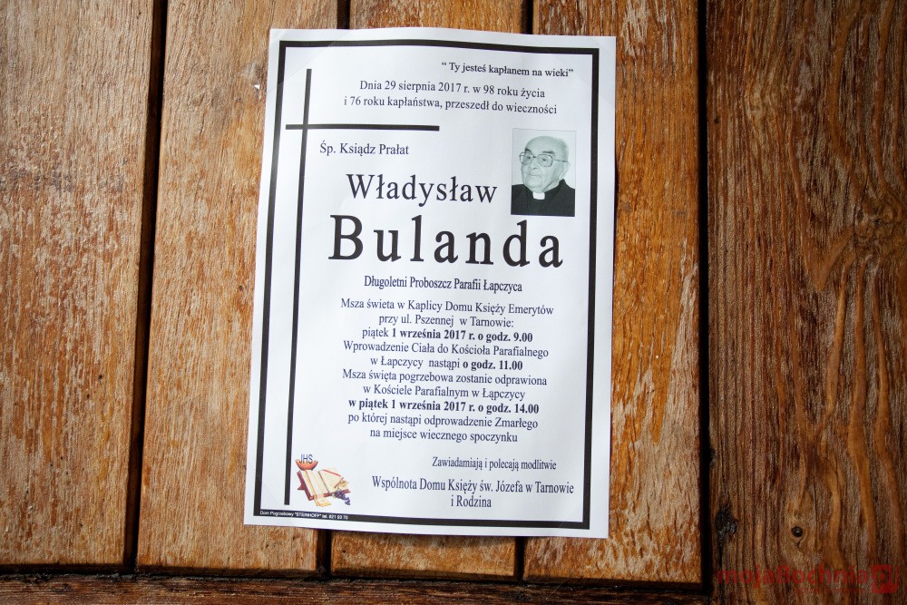 Mieszkańcy Łapczycy pożegnali swojego wieloletniego proboszcza, ks. Władysława Bulandę. Kierował tą parafią przez 32 lata, od 1958 do 1990 r. Ostatnie lata życia spędził w Domu Księży Emerytów w Tarnowie, ale zgodnie z jego wolą, pochowano go na cmentarzu w Łapczycy.