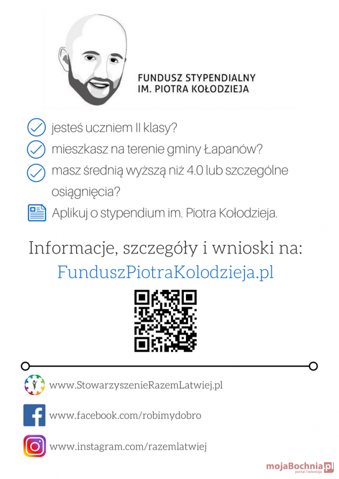 Stowarzyszenie RAZEM Łatwiej ogłasza nabór wniosków o przyznanie stypendium im. Piotra Kołodzieja. Fundusz stypendialny im. Piotra Kołodzieja jest częścią działań statutowych Stowarzyszenia RAZEM Łatwiej. Został powołany dla upamiętnienia tragicznie zmarłego skarbnika stowarzyszenia – Piotra Kołodzieja.