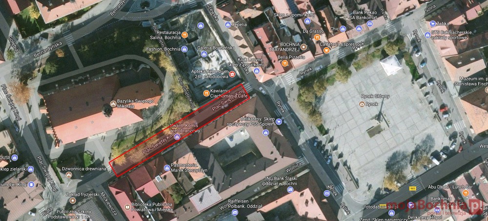 Urząd Miasta Bochnia informuje, że w okresie od 15 do 23 września Plac św. Kingi (od skrzyżowania z ul. Szewską do skrzyżowania z ul. Mickiewicza) zostanie wyłączony z ruchu samochodowego. Nie będzie też możliwości parkowania pojazdów.