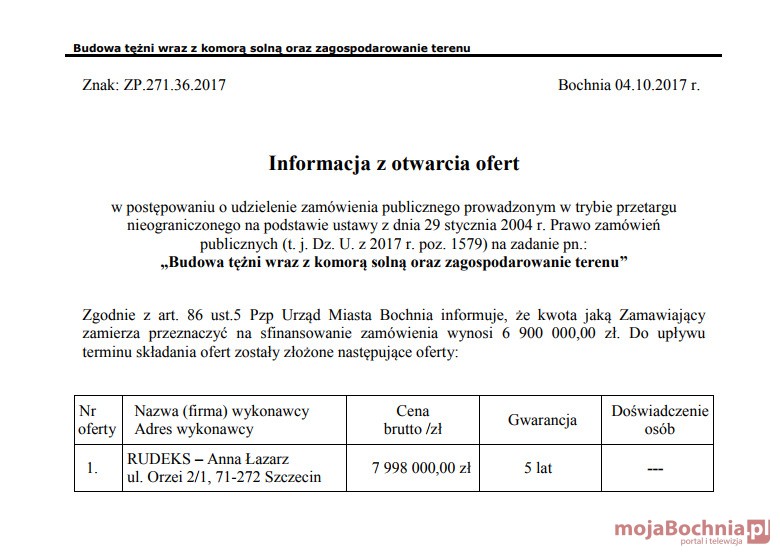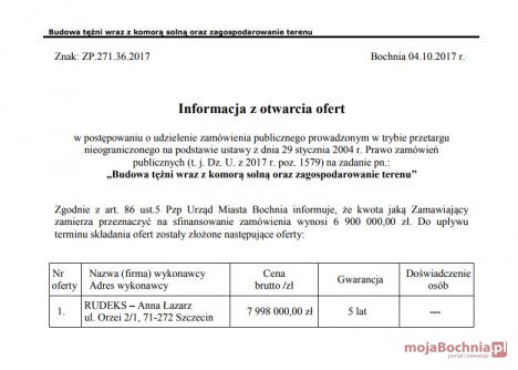 Na razie nie wiadomo, czy przetarg zostanie unieważniony, czy może urząd miasta dołoży brakujący milion złotych, aby zrealizować zapowiadaną przez burmistrza inwestycję.