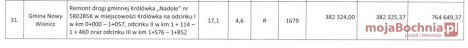 Na 31 miejscu znalazł się wniosek Miasta i Gminy Nowy Wiśnicz na 764 tys. zł: