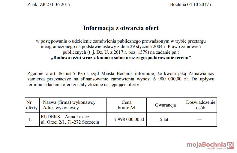 Przypomnijmy, miasto chce wybudować obiekt za 6,9 mln zł, ale jedyna złożona oferta to 8,5 mln zł brutto. Warto dodać, że ta sama firma ze Szczecina poprzednim razem zaoferowała cenę o ponad pół miliona złotych niższą, ale wtedy przetarg unieważniono.